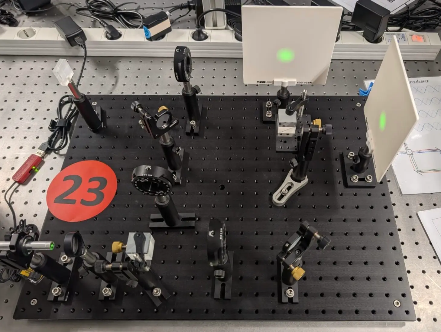 Außerdem durften wir selber Hand anlegen und einige spannende Experimente zur Quantenphysik, Optik und Licht durchführen. Eines davon war der „Quantenradierer“.