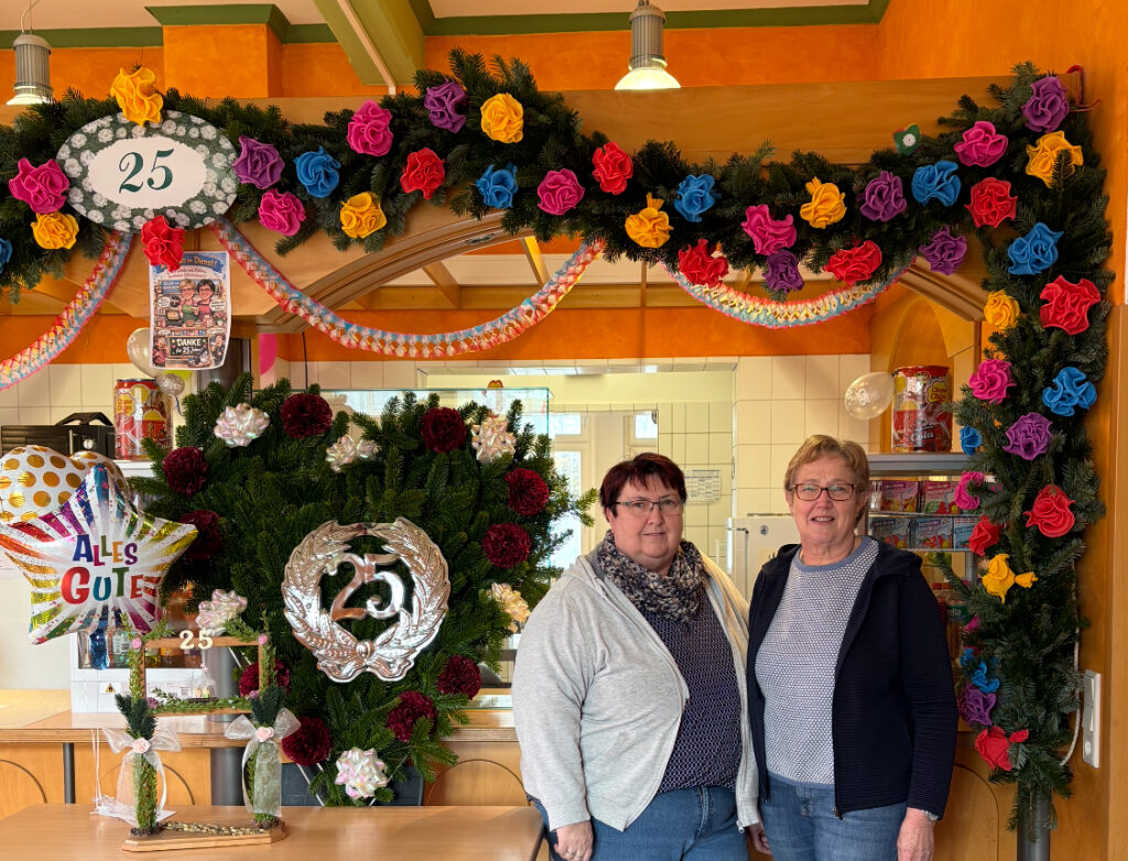 Mit bewundernswerter Geduld und der richtigen Portion Charme und Witz haben die beiden Schwestern in den letzten 25 Jahren Tag für Tag so manchem geholfen, den Schulalltag zu überstehen. Zudem wurde in all den Jahren nicht nur für das leibliche Wohl gesorgt, auch um kleinere Probleme und Sorgen – gerade bei den jüngeren Schülerinnen und Schülern – wurde sich ganz nebenbei noch liebevoll gekümmert.