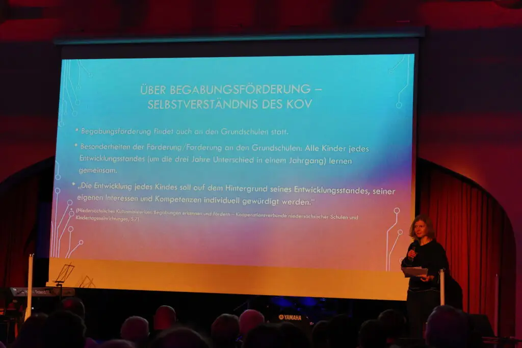 Anne Münzel von der Grundschule Westerende stellte den Kooperationsverbund vor, in dem sich das Gymnasium Ulricianum seit vielen Jahren mit der Lamberti- und der Finkenburgschule sowie besagter GS Westerende befindet.