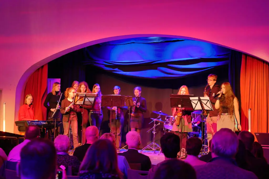 Unsere zwei ModeratorInnen Ida Krob und Jonas Reents aus dem zwölften Jahrgang führten souverän durch das Programm, begleitet von der Big Band der Schule.