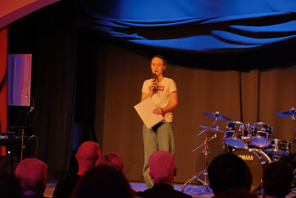 Nachdem Ellie Lorenz Spannendes über ihre Zeit an der Jugendakademie „HÖB“ berichtete, gaben Emilie Seeberg und Dana Hanssen eine Performance ihrer Eigenkomposition sowie Lenas „Strip“ zum Besten.