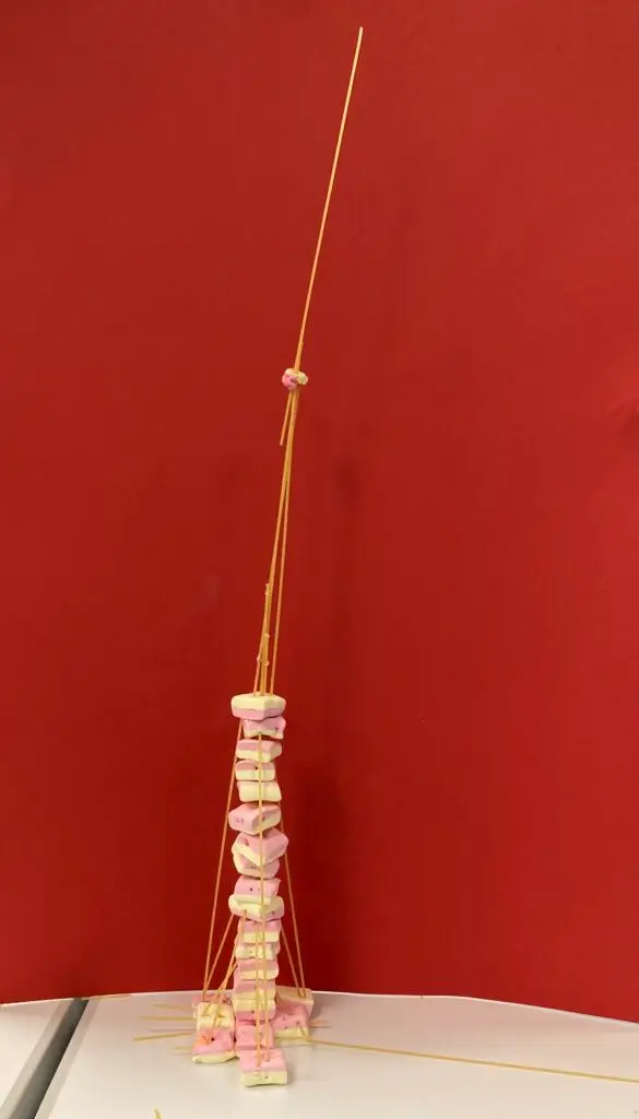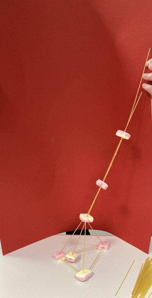 In der letzten AG-Stunde der Jugend-forscht-AG im Jahr 2025 stand ein kleiner Wettbewerb auf dem Programm. Drei Teams traten gegeneinander an mit dem Ziel, den „Turm des Nikolauses“ zu bauen – allerdings mit einer ganz besonderen Materialvorgabe: Marshmallows und Spaghetti.