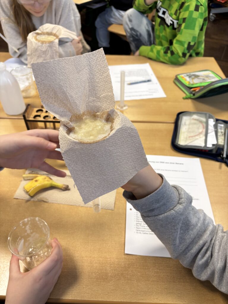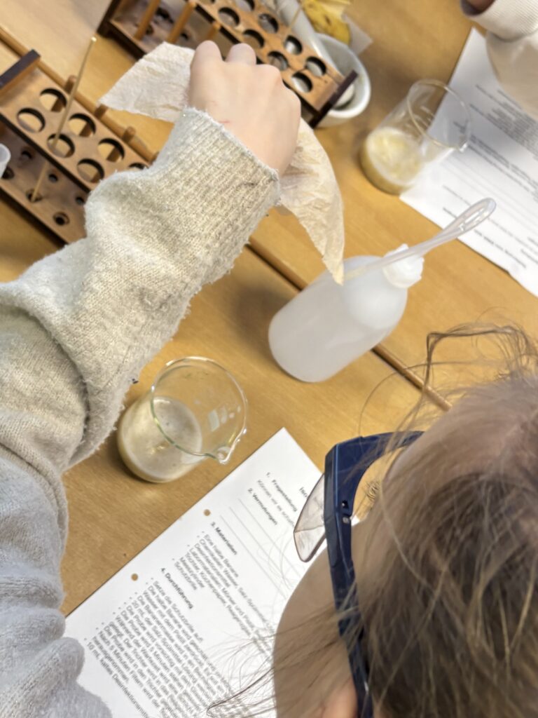 Es wurden Modelle zur Veranschaulichung der neuronalen Reizweiterleitung gebastelt, DNA aus einer Banane isoliert, die Polarisation von Licht nachempfunden, Aminosäuren auf einer Perlenkette dargestellt und ein Mini- Regenwald modelliert. Die anschließende, von regem Austausch begleitete Werkschau hinterließ bleibende Eindrücke bei den Jungforscherinnen und- forschern der Grundschulen.