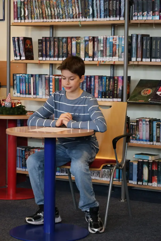 Der Vorlesewettbewerb der 6. Klassen ist jedes Jahr etwas Besonderes. Aus jeder Klasse treten die besten Leserinnen und Leser an und lesen aus einem Buch ihrer Wahl vor.  Vier von ihnen können sich so für das schulinterne Finale qualifizieren, in welchem dann  ein Fremdtext vorgelesen werden muss.